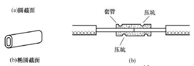 (1)銅導線或鋁導線的緊壓連接。壓接套管截面有圓形和橢圓形兩種,如圖12所示。圓截面套管內可以穿入一根導線,橢圓截面套管內可以并排穿入兩根導線。2xn拖鏈電纜-聚氨酯卷筒電纜-高柔性坦克鏈電纜廠家
