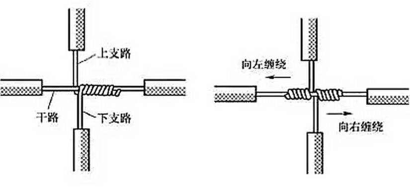 (2)單股銅導線的分支連接。單股銅導線的T字分支連接如圖4所示,將支路芯線的線頭緊密纏繞在干路芯線上5~8圈后剪去多余線頭即可。對于較小截面的芯線,可先將支路芯線的線頭在干路芯線上打一個環(huán)繞結,再緊密纏繞5~8圈后剪去多余線頭即可。2xn拖鏈電纜-聚氨酯卷筒電纜-高柔性坦克鏈電纜廠家