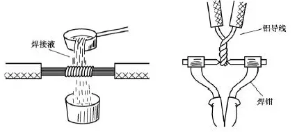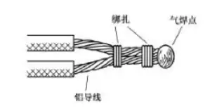 氣焊是指利用氣焊槍的高溫火焰,將鋁芯線的連接點加熱,使待連接的鋁芯線相互熔融連接。氣焊前應將待連接的鋁芯線絞合,或用鋁絲或鐵絲綁扎固定,如圖19所示。2xn拖鏈電纜-聚氨酯卷筒電纜-高柔性坦克鏈電纜廠家