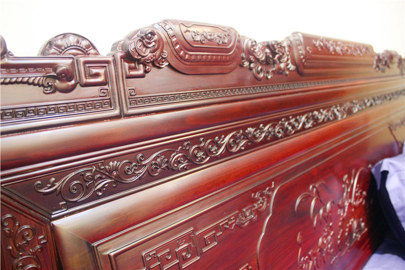 寬大的床屏,細(xì)致入微的雕刻工藝將花草描繪的惟妙惟肖,凹凸有致,極具文化氣息。